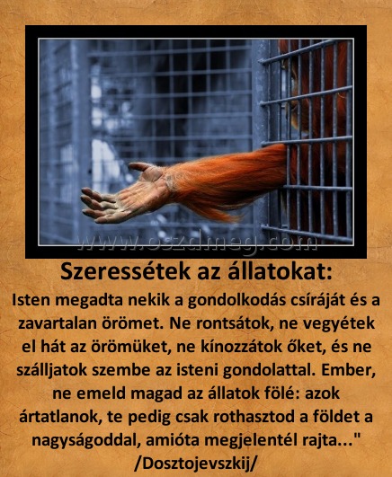 | Milyen furcsa, gondoltam: | Szeressétek az állatokat: |